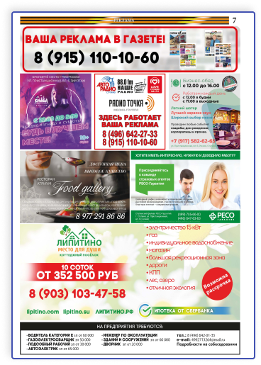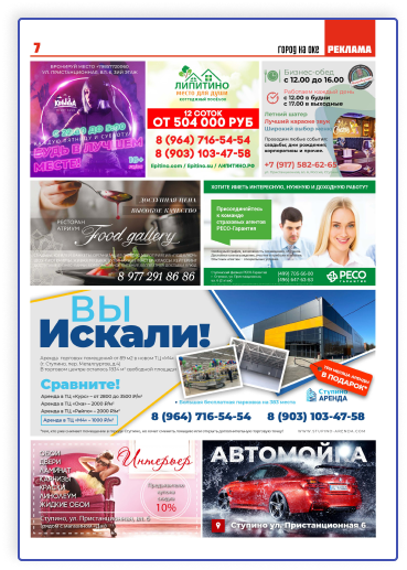 *При размещении на первой странице газеты, к стоимости прибавляется 1 000 ₽